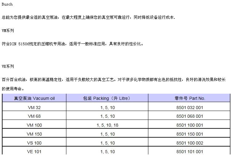 BUSCH真空泵油資料